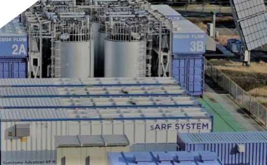 変換効率が40~50%と極めて高い集光型太陽光発電装置と20年間のシステム耐久性を持つレドックスフロー電池により大規模蓄発電を実現。再生可能エネルギーの導入を拡大する技術として期待されています。