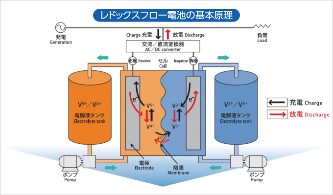 →レドックスフロー電池は充放電回数制限無し。20年間しっかり稼働します。