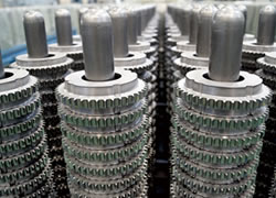 「焼結合金」は、鉄を中心とした複数の金属を細かい粉末の状態で圧縮成形し、高温で焼き固める「粉末冶金法(PM)」によって作られます。複雑な形状の部品製造に適し、組み合わせる金属の比率を変えることで、多様な組成の合金も製造できます。こうした特性により、自動車部品をはじめ、事務機器や家電製品に使われています。
