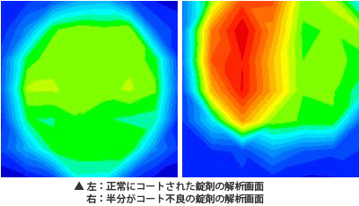 錠剤表面のコート検査は、従来は生産工程上での検査が困難でした。本検査技術の実用化により、生産工程上(その場)で迅速に錠剤のコート異常の検知が可能となり、また、周辺錠剤の破棄も不要となるので、生産効率の向上やコスト低減に寄与するものと期待しています。さらに、全数検査も可能となり、製品の安全性の確保にも貢献できるものと考えています。