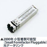 光データリンクとは、光通信を行う際に使われる最も基本的な部品のひとつです。図1のように、光送信モジュールと光受信モジュールで構成され、伝送路に光ファイバを使います。光送信側では、電気信号を光信号に交換し、光ファイバを通してその信号を受け取る光受信側では、光信号を電気信号に変換する機能を持っています。今やブロードバンドネットワークのいたるところで使われていますが、世界で初めて光通信用の光電気変換モジュールを「光データリンク」と命名したのは、住友電工だと思われます。