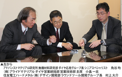 こうした研究開発に並行して、角谷はNPDを精密加工用工具素材として使えないかと、ダイヤモンド切削工具を開発・製造している小畠らに話を持ちかけました。
