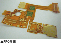 一方、導電性ペーストによる接続(以下、ペーストビア法、図(2))は、①回路を形成し、②絶縁フィルムに穴をあけ、③導電性ペーストを穴に充填するというプロセスからなります。導電性ペーストに当社独自の金属ナノ粒子を採用し、ビアホールに高精度かつ均一に印刷・充填・固着させる技術を開発することにより、高い接続信頼性と品質安定性を実現することが可能になりました(特許出願済み)。ペーストビア法では、めっき銅の余分な厚みがないため、FPCを従来比で最大約30%薄型化でき柔軟性が大きく向上するとともに、より高精細な回路形成が可能になります。製造工程も、パネルめっき法と比べてシンプルになり、また不良の原因となりやすい、めっき工程を経ないため、高品質で信頼性の高いFPCを提供できます。