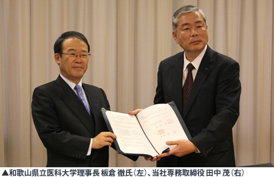 当社と公立大学法人和歌山県立医科大学(以下「和医大」)は、産学連携によるイノベーションの推進を通じた先進的な医療機器の創出等の実現により、両者の発展並びに国民福祉の向上に貢献することを目的とした、包括的連携協定を結ぶことに合意し、7月10日に協定書に調印しました。