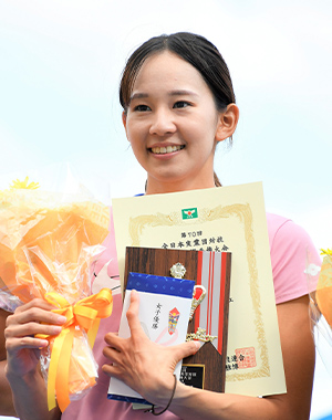 本大会では「走幅跳」に出場し、優勝することができました!また、自己記録を更新し、ずっと目標にしていた8メートルジャンプも達成することができて嬉しいです。