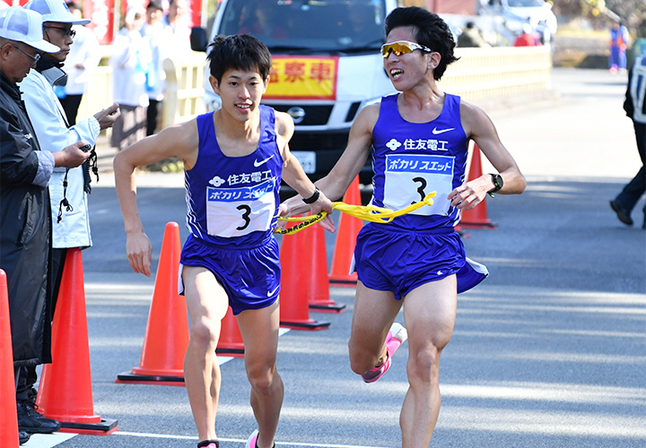 今回はたくさんのご声援ありがとうございました。実業団駅伝デビュー戦で結果を残すことが出来てホッとしています。今回はインパクトのある走りが出来ましたが、自身の力不足も多く感じた駅伝でした。その力不足を埋める為にもより一層、練習に精進してまいります。今後とも住友電工陸上部の応援をよろしくお願いいたします。